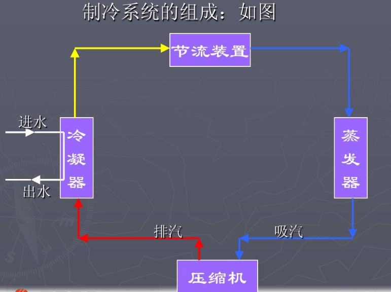 五、冷凝溫度變化對制冷系統(tǒng)影響:機組部件有關溫度都有正常的溫度范圍,超出這個范圍就屬不正常的狀態(tài)。造成這些不正常的因素可能故障,也可能是調整不正確,但都要分析它的原因,并及時處理或檢查。這些溫度點難以用溫度計測量,一般只能用手感來估計,然后判斷是否正常。(1) 排氣溫度的影響注意:夏季情況下,壓縮機的排氣溫度是比較高的,手無法觸摸。按國家標準規(guī)定,R22的制冷系統(tǒng)的排氣溫度應該不會超過150℃,超過這溫度線屬不正常狀況。排氣溫度非常高:壓縮機的吸氣溫度非常高,或是冷凝溫度非常高所造成,必須引起注意。排氣溫度過低:手摸排氣管不燙手,這說明吸氣溫度特別低,壓縮機可能濕行程運行或系統(tǒng)工質相當少的運行狀態(tài)。(2) 機殼溫度變化對壓縮機和制冷系統(tǒng)的影響全封閉往復活塞壓縮機機殼外表的溫度場可分兩部分:上機殼:受吸入蒸氣的影響,溫度比較低,處在微熱或稍涼范圍,估計在30℃左右,在吸氣管的周圍局部機殼表面有結露水的可能。下機殼:電動機的發(fā)熱量和被冷凍油帶出的摩擦熱量,主要由蒸氣帶出機殼。1) 機殼溫度過高的影響及原因 機殼表面溫度超過正常范圍制冷系統(tǒng)的吸氣溫度過高(高于15℃);過高的熱蒸氣進入壓縮機,吸收機殼內熱量后,使蒸氣的溫度更高,從而使機殼的溫度上升;過熱蒸氣的溫度上升很高,機殼的溫度也升得很高,對油的冷卻不利,這會影響運動零件的潤滑,加速磨損,嚴重者使軸承抱軸,另外還會引起排氣溫度上升。2) 機殼溫度過低的影響及原因 機殼表面溫度低于正常范圍吸氣溫度太低(低于15℃);它對冷凍油和電動機繞組的冷卻都有利,但制冷量有所下降;當吸氣溫度特別低時,會使大半只機殼結露,就有液擊的危險,這是對壓縮機的致命打擊,應特別注意;同時冷凍油內溶解大量的制冷劑,不利于運動零件的潤滑。(3) 凝器的溫度狀況正常情況:前半部散熱管很熱,且其溫度有緩慢緩慢的逐步下降的均勢。后半部散熱管的熱感程度與前半部相比有較大的降低,這是由于后半部管內制冷劑已逐步液化,已達到冷凝溫度和過冷溫度。不正常情況:前半部不太熱,后半部接近常溫(環(huán)境溫度),其原因是壓縮機吸信濕蒸汽制冷劑時或制冷劑量不足。另一種是整個冷凝管都很熱,其原因是制冷劑量過多或通風量小,或環(huán)境溫度高。正常情況上半部比較熱下半部是溫熱。不正常情況整個殼體都不太熱,其原因是制冷劑量不夠;另一種情況是整個殼體都很熱,其原因是冷卻水量不足或散熱效果差。(4) 貯液器的溫度狀況 在正常情況下,吸氣管用手摸感覺很涼,并結有露水。冷凝器散熱差,冷凝溫度高或制冷劑量充注過多。(5) 液體管溫度狀況溫熱;不正常:比較熱。冷凝器散熱差,冷凝溫度高或制冷劑流量過多。(6) 過濾器溫度狀況它有一個突出的不正?,F象,就數濾器可能會發(fā)涼,其原因數濾網孔被污泥阻塞,使過濾器不暢通,當制冷劑流過濾網時,發(fā)生了節(jié)流現象,即有一部分液體氣化吸熱,使過濾器發(fā)涼,嚴重的會結露。另一種不正常的現象數濾器不熱,與環(huán)境溫度相當,其原因數濾網完全堵塞不通,制冷劑不能流動。(7) 吸氣管的溫度狀況正常情況下,吸氣管用手摸感覺很涼,并結有露水。不正常情況下,一是吸氣管較冷、露水太多,以致使機殼大面積結露。原因是制冷劑流量過大,液體不能在蒸發(fā)器內全部氣化,有液體回流現象。