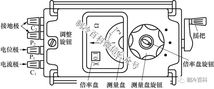 電源為手搖發(fā)電機,測量機構(gòu)為磁電式流比計。優(yōu)點是比較方便,但缺點是輸出電壓難以保證。