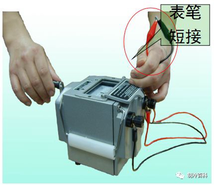 短路試驗:將端鈕L和E短接,緩慢搖動手柄,觀察指針是否指在標度尺的“0”位置。