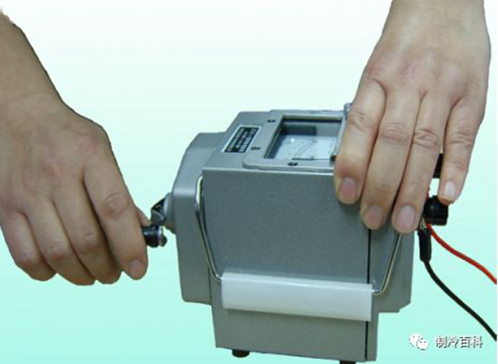 將被測設(shè)備與兆歐表正確接線。搖動手柄時應(yīng)由慢漸快至額定轉(zhuǎn)速120r/min。