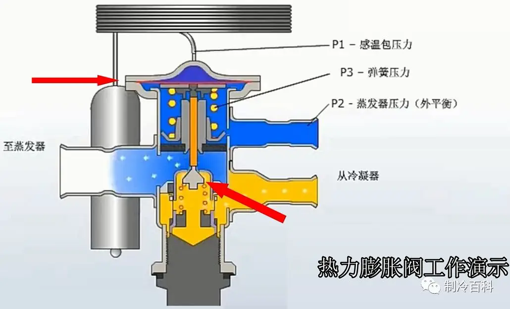 熱力膨脹閥冰堵塞一般發(fā)生在膨脹閥的節(jié)流孔處,其故障特征是:制冷系統(tǒng)開始運行時制冷正常,但過了一段時間,蒸發(fā)器開始出現(xiàn)融霜現(xiàn)象。待融霜過程結束以后,蒸發(fā)器恢復制冷狀態(tài),過一段時間后再次出現(xiàn)融霜現(xiàn)象。遇到熱力膨脹閥冰堵塞問題的處理方法是:對于熱力膨脹閥輕微冰堵, 可用熱毛巾敷在熱力膨脹閥冰堵處,即可化開冰堵,恢復制冷系統(tǒng)運行;如果冰堵程度比較嚴重,不能恢復制冷系統(tǒng)的正常運行,可將干燥過濾器兩端的截止閥關閉,從制冷系統(tǒng)上拆下干燥過濾器,更換干燥過濾器中的干燥劑后,先打開干燥過濾器進液口的截止閥,松開出液口的截止閥進口納子,待有氣體跑出后擰緊再打開干燥過濾器出液口的截止閥,即可消除故障現(xiàn)象,恢復制冷系統(tǒng)正常運行。2、冷庫系統(tǒng)臟堵特征與處理方法冷庫系統(tǒng)臟堵的特征是制冷系統(tǒng)的壓縮機運行正常,但蒸發(fā)器不結霜,高壓排氣壓力比正常值偏低,低壓回氣壓力比正常值也偏低甚至為負值。制冷系統(tǒng)發(fā)生臟堵后,制冷劑不能循環(huán),引起高低壓力繼電器低壓保護動作,壓縮機停機。再次手動開機,故障現(xiàn)象依然,就是典型的臟堵故障了。熱力膨脹閥經(jīng)常出現(xiàn)臟堵,其特點是:當膨脹閥的進口處出現(xiàn)結霜(或閥蓋也結霜),進液管的溫度比常溫低,甚至結露。壓縮機的吸氣壓力低于庫溫下的相對應的正常壓力,冷庫內(nèi)溫度下降緩慢或不下降,這說明熱量膨脹閥存在臟堵現(xiàn)象。遇到熱力膨脹閥出現(xiàn)臟堵問題的處理方法是:將制冷系統(tǒng)的出液閥至蒸發(fā)器的截止閥關閉。拆開膨脹閥的進液口,取出濾網(wǎng)用煤油清洗后重新裝回,更換干燥過濾器中的干燥劑后,先打開干燥過濾器進液口的截止閥,松開熱力膨脹閥出液口的截止閥進口納子,待有氣體跑出后擰緊再打開熱力膨脹閥出液口的截止閥,即可消除故障現(xiàn)象,回復制冷系統(tǒng)正常運行。3、冷庫系統(tǒng)油堵特征與處理方法冷庫制冷系統(tǒng)油堵是指熱力膨脹閥的閥孔被凝固的潤滑油堵塞而阻礙制冷劑流動的現(xiàn)象。一般發(fā)生在低溫冷庫的制冷系統(tǒng),或選用凝固點偏高,以及劣質(zhì)冷凍油所致,因為劣質(zhì)冷凍油凝固點偏高,可能造成冷凍潤滑油在與制冷劑混合后,流經(jīng)熱力膨脹閥閥孔時,因溫度驟降而使部分潤滑油從制冷劑中析出并凍成厚糨糊狀,造成熱力膨脹閥閥孔被堵塞,遇到制冷系統(tǒng)油堵問題,通常需要更換冷凍油。[[文章來源:制冷百科,版權歸原作者所有,如有版權問題請聯(lián)系刪除]]