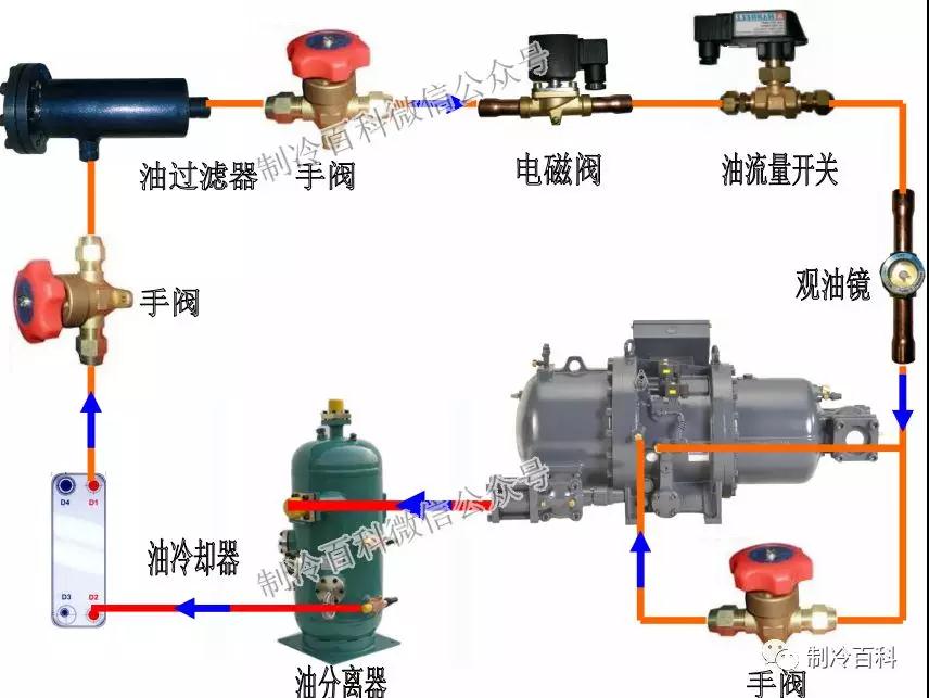 另一方面機(jī)器缺油無法運(yùn)行,需要不斷補(bǔ)充潤滑油,而這則會導(dǎo)致系統(tǒng)里的潤滑油越積越多,造成惡性循環(huán),增加運(yùn)行費(fèi)用,降低運(yùn)行可靠性。一般情況下,制冷劑氣體流量1%以下油氣混合物在系統(tǒng)中循環(huán)是允許的。