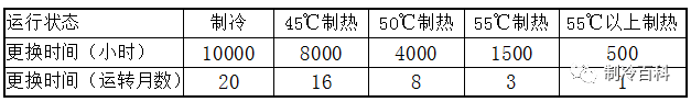 2、壓縮機之排氣溫度若長期維持在高溫高壓狀態(tài),則潤滑油劣化進度加快,須定期(每2個月)檢查潤滑油化學特性,不合格時即更換。若無法定期檢查則可依以下建議表執(zhí)行。